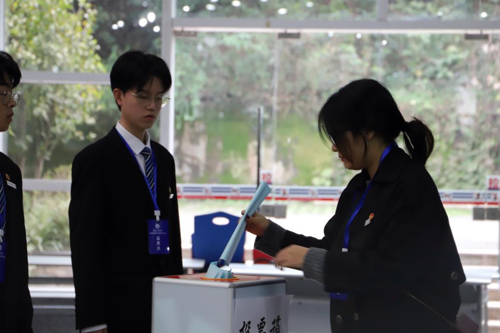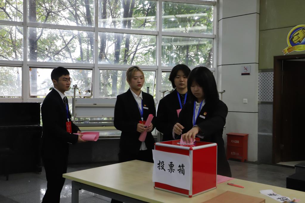 图为:学生代表们正在投票