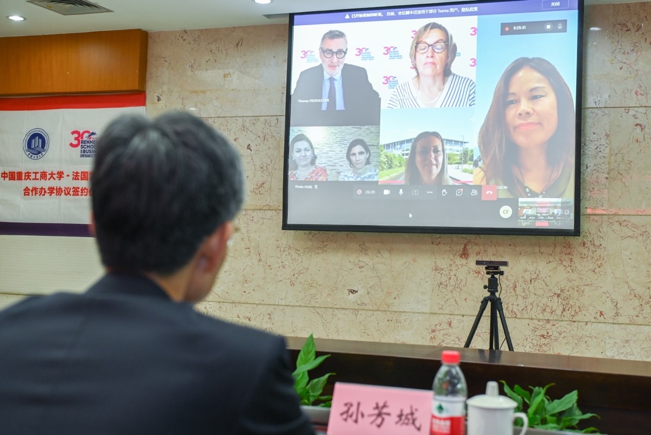 副校长柏群在发言中期待双方在不久的将来能在重庆或法国实现面对面的交流和互访,扎实推进双方的合作。