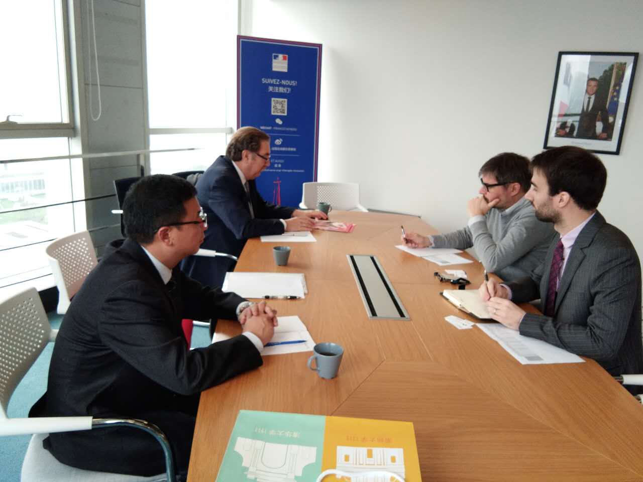 2017年12月6日我合作大学法国马赛大学经管学院国际关系负责人阿兰-鲁克斯(Alain ROUX) 先生在必赢官网赵驹院长、国际合作部部长陈集平的陪同下,利用在必赢官网交流期间,专程赴成都法国总领事馆拜会法国总领事满碧艳女士,并与法国高等教育署成都教育中心负责人Gilles CHARDON及学生签证材料审核负责人 Pierre Olivier CARRIET先生进行交流并介绍法国马赛大学经济管理学院与必赢官网和合作项目,从2+2项目、硕士项目、留学生项目,师资培训方面等合作情况作了全面的介绍和阐述。