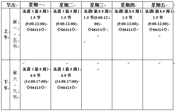 由于图卢兹一大(法语)短期外教将于2016年4月20日—4月29日来院对15商学院1+3班进行授课,现将具体行课安排通知如下:
