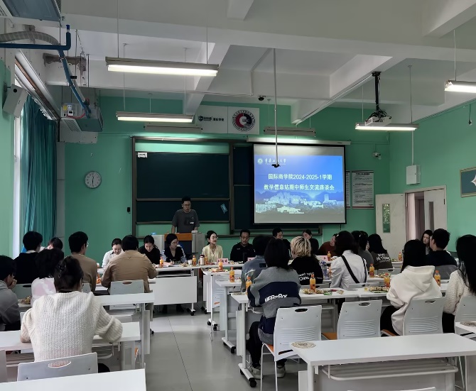 2024年10月29日中午12点30-14点,由学院教学信息站组织的2024-2025第一学期期中教学座谈会顺利落下帷幕。期中教学座谈会是每学期的一项重要会议,旨在连接同学和老师,通过沟通交流达到教学相长的目的,从而推动教学活动良性循环开展。参加此次座谈会的有学院党总支书记李大鹏、院长詹川、党总支副书记胡婧婷、院长助理黎红、各教研室负责人、学院督导、学院各部门负责人以及各班信息员。座谈会由詹川院长主持。