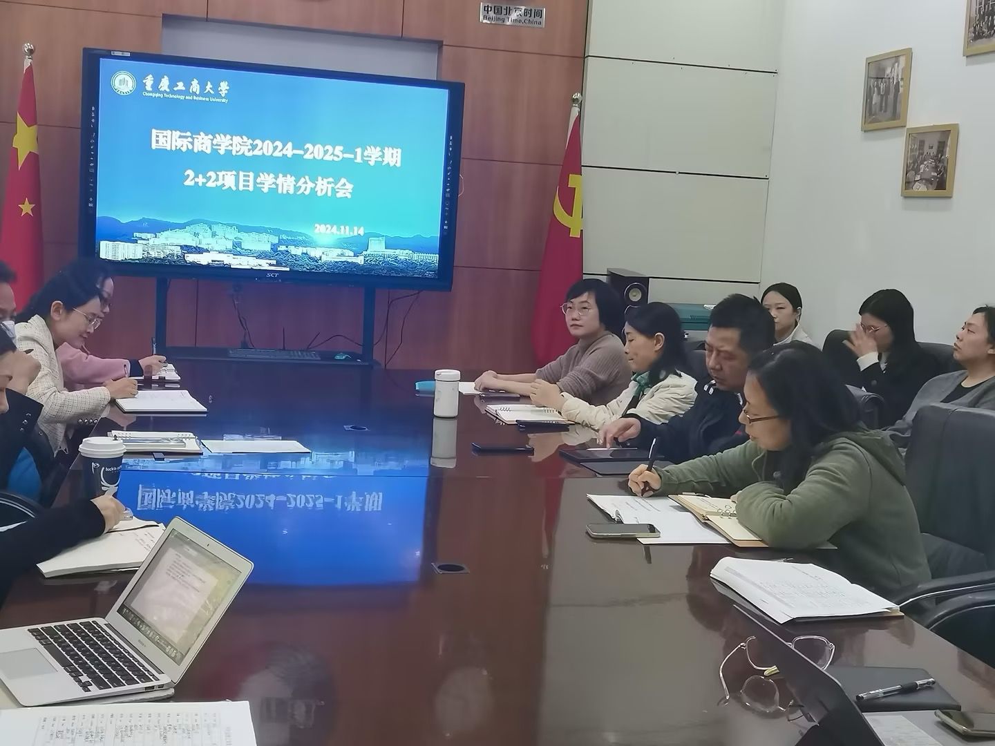 必赢官网于2024年11月14日中午12点30分在学院60510会议室召开了本学期2+2项目学情分析会。会议有詹川院长主持,学院李大鹏书记、胡婧婷副书记、院长助理黎红、各教研室负责人、各行政部门负责人、全体辅导员老师和2+2任课教师参加了本次分析会。分析会首先由詹川院长讲话指出本次会议旨在听取大家对2+2项目的各种问题以及意见建议,希望大家积极发言,为学院2+2项目发展献言建策,为学院2+2项目的招生、培养方案改革等提供一手资料。紧接着任课教师们结合自己教学中发现的问题和课后与学生交流的情况分别从教学班级整体学习情况、学风情况以及个别需要重点关注学生的情况做了发言,与会辅导员们介绍了学生的家庭情况、心理健康情况、学生参加社团活动情况以及个别重点关注学生详细情况,各部门负责人也就2+2项目在管理中出现的问题以及解决方案提出了自己的见解。最后,学院李书记做了总结发言。指出听取了大家的发言后,学院下一步将从管理-教学-学生三个方面针对大家提出的问题做深入思考提出有效改进措施,让学院的2+2项目得到家长、同行、社会高度认可。