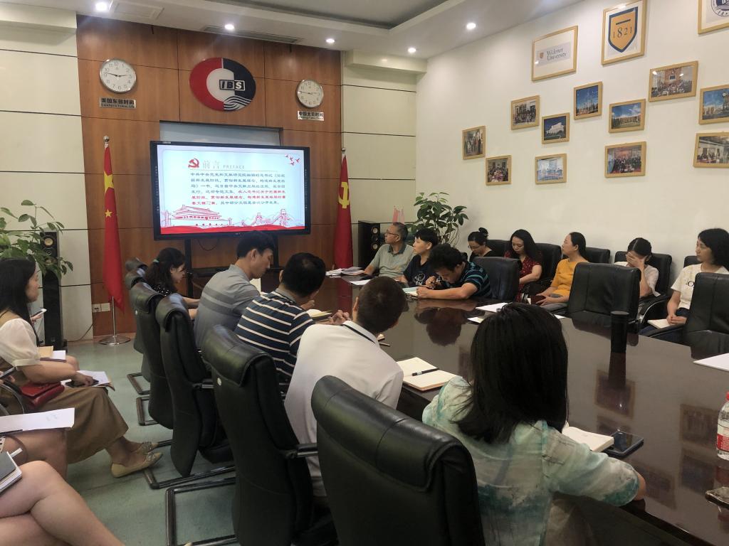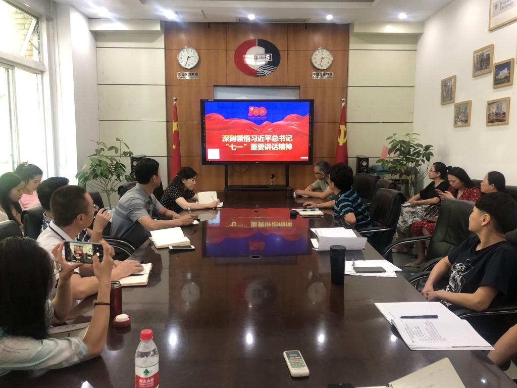 首先,教工支部书记李大鹏同志为全体教工党员讲了专题党课《深刻领悟习近平总书记“七一”重要讲话精神》。李大鹏同志主要从“丰功伟绩,恢宏史诗、精神血脉,代代相传、以史为鉴,开创未来”三个方面进行了详细阐述,同时组织参会党员同志进行了讨论。