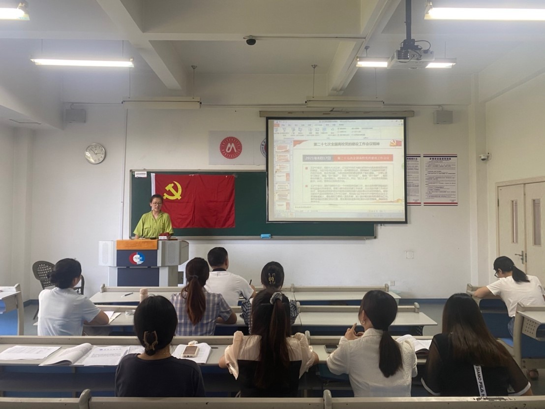 2021年9月24日星期五下午14:30,必赢76net线路唯一官方网站学生第一党支部在必赢76net线路唯一官方网站60404教室开展了9月组织生活学习会。活动由党支部书记彭丹老师主持,党支部成员全体参与。