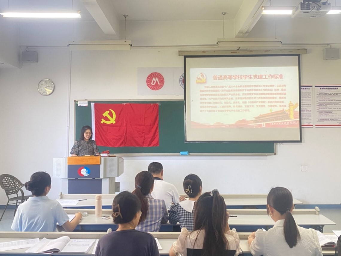 首先,支部书记彭丹老师介绍了普通高等学校学生党建工作标准,并对支部党建工作从组织领导、教育培养、发展党员、党员管理、作用发挥、条件保障六个方面提出了具体要求。其次,彭丹老师就9月组织生活学习资料内容作了总结和传达,还告诫大家作为新时代的大学生,应该具备深刻的思想认识和强烈的社会责任感,学生党员更应该发挥先锋模范作用。