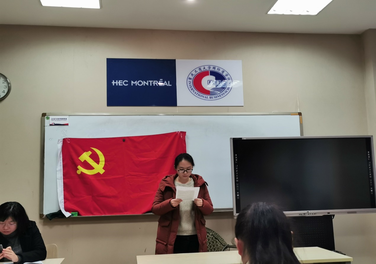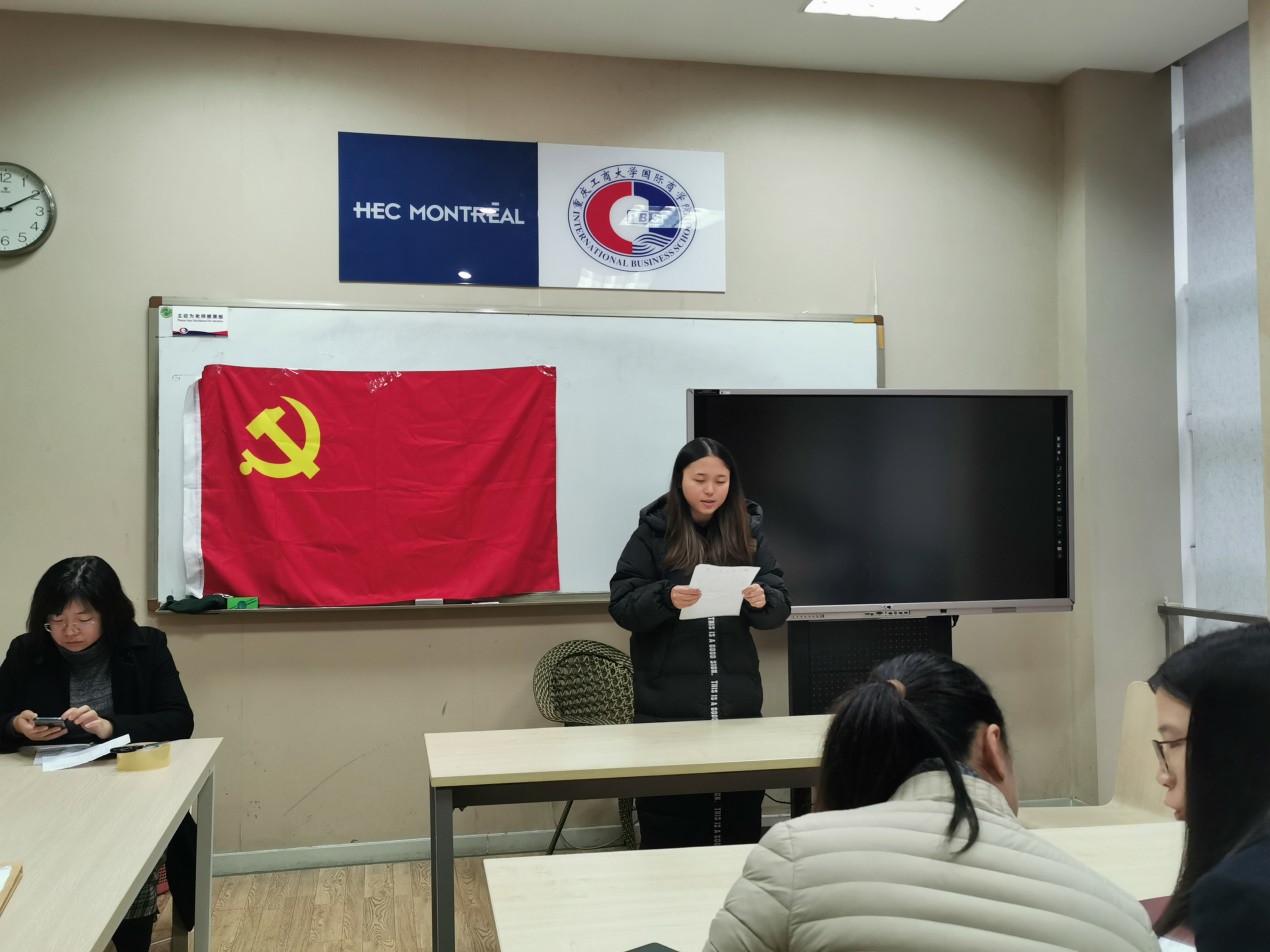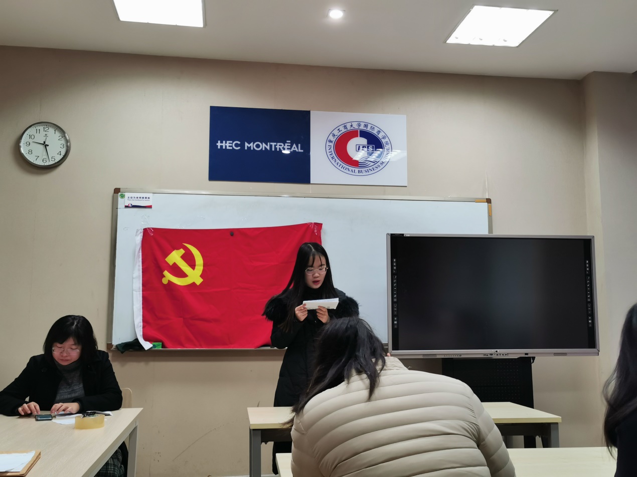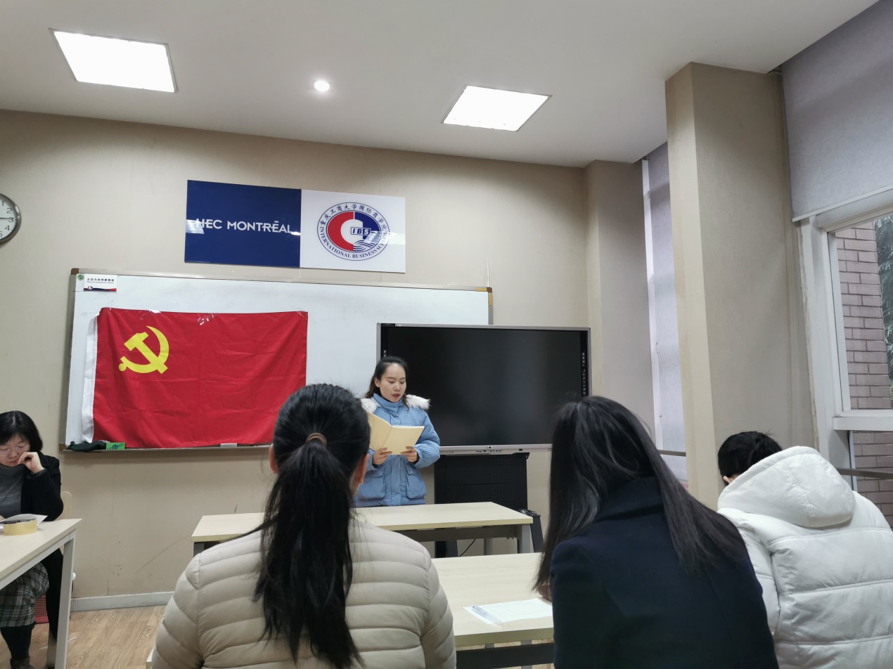 2019年11月27日上午九点必赢76net线路唯一官方网站总支学生第一党支部的老师和同学们在国商408教室召开了支部大会,会议主要为了讨论田雨馨、唐蕴仪、邹畅、王羽、张瑞杰、刘春六名党员转正的相关事宜。