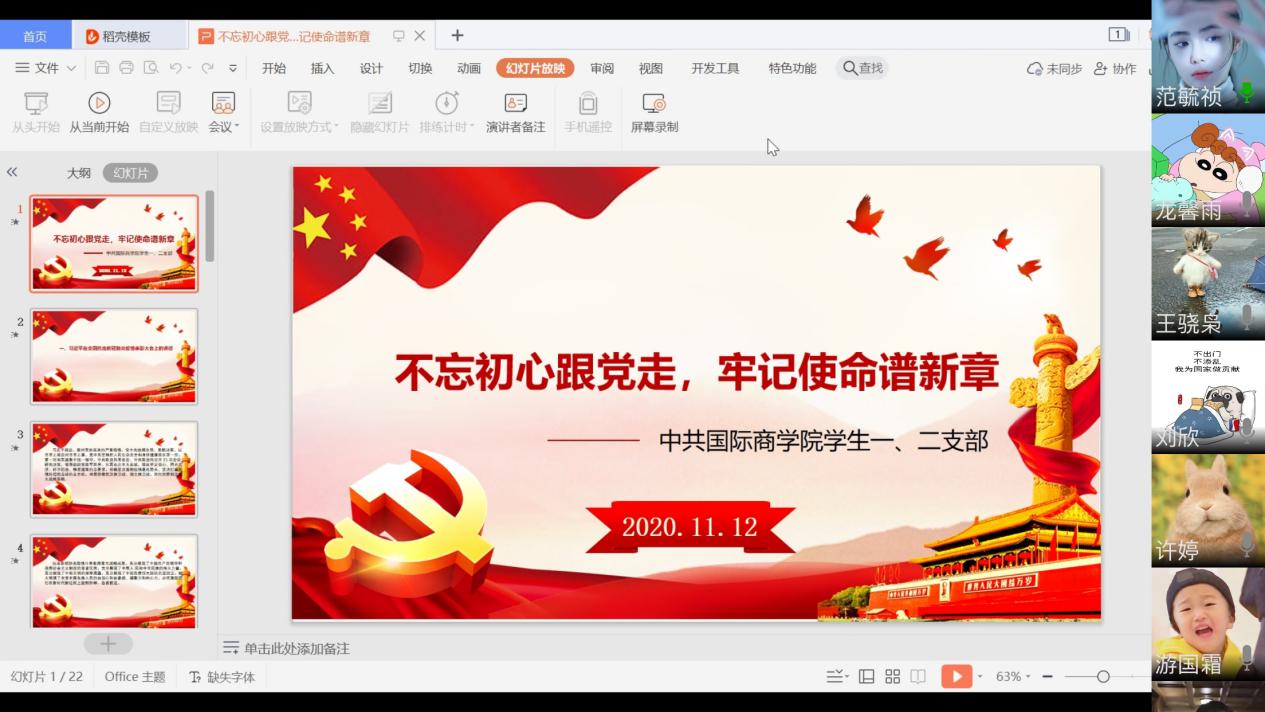 2020年11月12日,中共必赢76net线路唯一官方网站党总支学生第一、二支部在企业微信群开展了学习培训活动。学生一、二支部全体成员参加了本次大会。支部大会应到41人,实到39人,2人请假。
