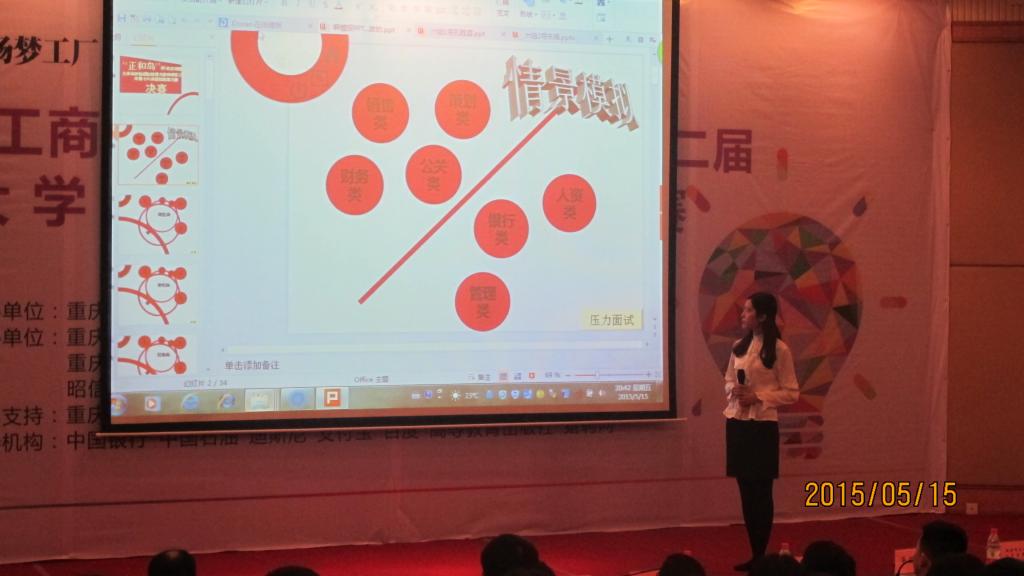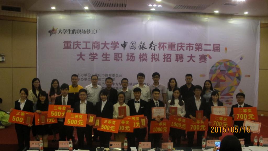 正和岛杯重庆市第二届大学生职场模拟招聘大赛暨必赢76net线路唯一官方网站第十六届职场模拟招聘大赛于   2015年   5月   15日   圆满落幕。本次决赛共评选出一等奖2名,二等奖4名,三等奖6名,优秀奖48名。必赢官网12级金融一班的孔胜蓝斩获一等奖,得到奖金1000元;12级工商二班的孙樱菊和14级国贸一班的乔一龙分别荣获三等奖,获得奖金500元,其中乔一龙是入围选手中唯一的大一学生。