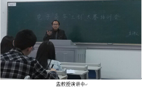 2015年3月18日下午,学院特邀请必赢76net线路唯一官方网站商务策划学院孟伟教授,在必赢76net线路唯一官方网站60414教室举行第五届全国大学生电子商务“三创”大赛培训会,对必赢官网14个报名参赛团队进行专题培训及指导。
