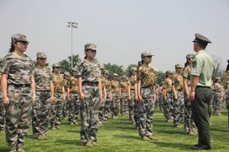 军训就这么如期而至了,跌宕不平的心注入了一剂镇静剂。早晨,太阳升起,操场上已经站满了密密麻麻的大一新生,在我们面前的是我们的教官;下午,烈日炎炎,头顶太阳的也还是那群军训的我们,眼前还是那位熟悉的教官(瘦小有力);当黑夜来临,天空披上一层黑色外衣,四个明亮的灯把操场照的通亮,一声声响亮的口号响彻天际,冲破黑暗,振奋人心,夜晚的阴凉洗去了学子一天的疲惫,每个人都注视着一个人,那就是我们的教官!