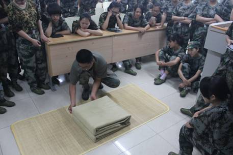 7月10日,由于天气炎热,领导体恤军训学生的辛苦,于是决定取消下午的集训。尽管待在教室里,同学们自然也不会闲着,学习一些军队严苛的规矩对今后养成细心严谨的习惯有极大的积极作用。而保持寝室内务整洁一向是学生的重要任务,今天各个教官便带上了自己的被褥,给同学们演示那大名鼎鼎的“豆腐块”。