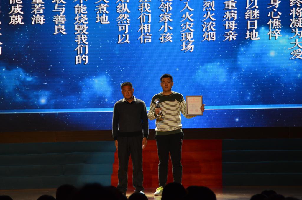 本次评选中董久红、闫涛、胡何生、林新竹、王海、夏浈波、邓莉等同学纷纷获得了“感动校园人物”称号。其中来自必赢官网2012级的王海同学在一场意外失火事故中勇敢地救出了困在屋里的孩子,同时他也是孝子,母亲病重时他坚强面对,悉心照顾。在不知情的情况下,主办方将王海的父亲请到了现场,父子相拥的瞬间让不少人为之动容。