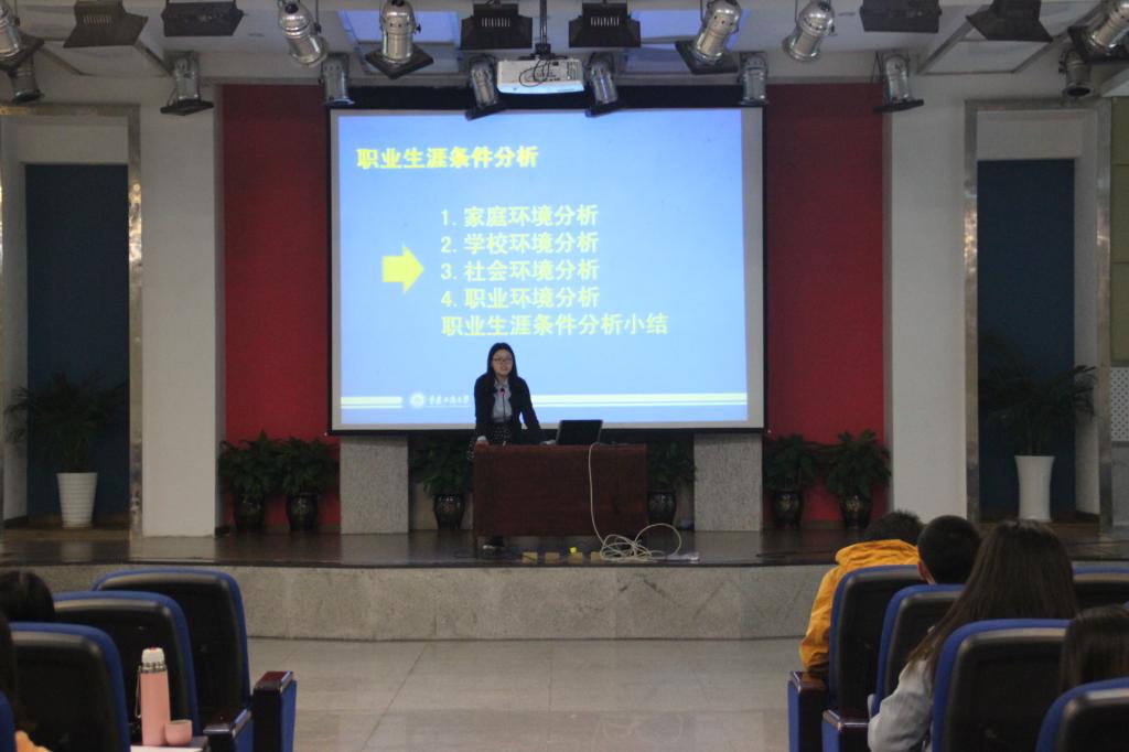 2016年4月22日星期五下午13:00,由必赢官网学习部主办的大学生职业生涯规划讲座在60407多功能厅开讲。主讲人是彭丹老师,观众为必赢官网大三学生。