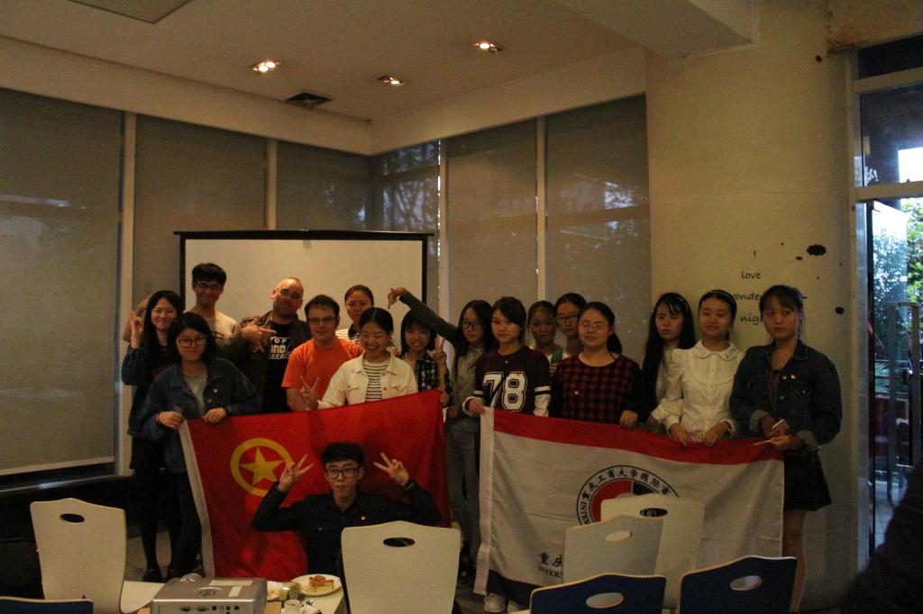 2016年10月18日下午5点, “香颂浪漫的法国”主题团日活动于必赢76net线路唯一官方网站咖啡吧正式开展。必赢官网必赢76net线路唯一官方网站2015级法语一支部及外教Emmanuel和Pière以及重庆各高校通过抢板凳的方式来参加的同学共同参与了本次活动。同时2016年十佳主题团日“抢板凳”活动展示的评委也到达现场。