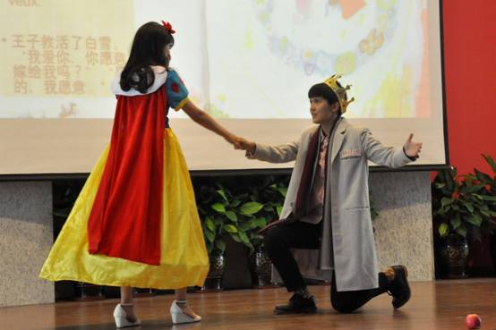 图为必赢76net线路唯一官方网站表演的法语话剧《白雪公主》