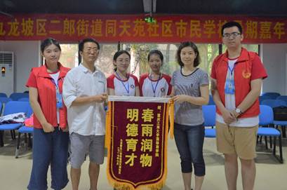 在此同时社区的工作人员对参与本次实践活动的志愿者们表达了由衷地感谢,对此次三下乡的团队给予高度评价并赠予锦旗。在双方的互相配合中,实践活动不仅丰富了孩子们的生活,也给志愿者们带来了美好的回忆与难以忘却的经历。