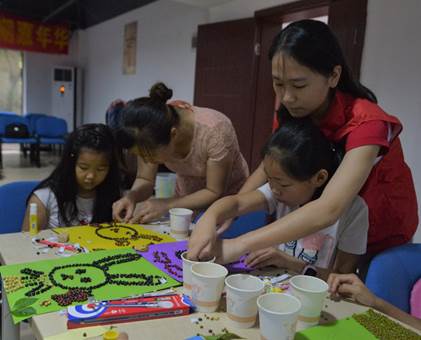 在同天苑社区,李云舒带着小朋友们走进了一个与众不同的拼图世界。课堂上,老师以“植物籽粒拼图”为主题,采取视频讲解与操作示范相结合的教学方式,详细地为小朋友们讲述了如何用生活中常见的五谷杂粮,摆拼出一幅幅丰富多彩的拼图画。在讲课后,小朋友们在老师的指导下,动手动脑,借着自己天马行空般的想象力,制作出图案各异,精致无比的拼图画。从这门充满趣味的课程里,大家从一颗颗籽粒中汲取灵感,发挥想象,受益匪浅。