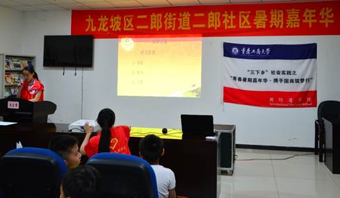 在此次暑期“三下乡”市民学校实践活动中的最后一天,必赢76net线路唯一官方网站社会实践服务团分别在二郎街道的同天苑社区和二郎社区开展了一堂以“学习习总书记系列讲话的重要内容”为主题的宣讲会。