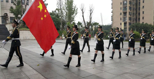 图为国旗护卫队向国旗台行进