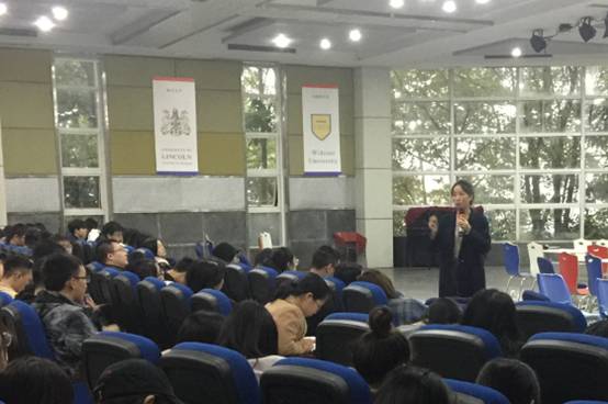《职场礼仪须知》讲座一开始,一身着装干练优雅的美女老师走到学生中间,询问同学们对她的第一印象。IPA国际认证高级礼仪培训师、中国专业人才库礼仪专家委员会委员、重庆蕙质兰心文化传播有限公司金牌讲师田璐璐老师,长期致力于礼仪文化的传播,从事礼仪、沟通、行政办公等培训教学工作,积累了大量实用的礼仪培训经验,形成了个人独特的授课风格。从礼仪修养、个人形象提升、客户服务等多方面介绍了职场商务礼仪须知,讲座图文并茂、生动活泼、现场互动丰富从而获得学生好评。