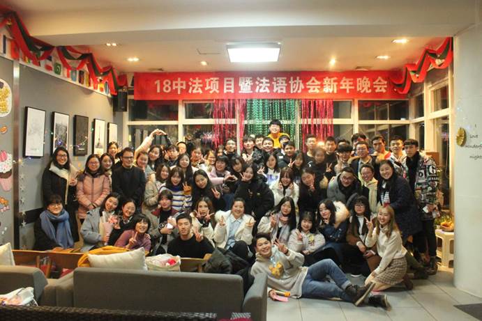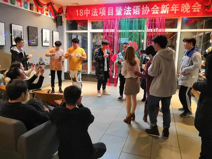 2018年12月27日晚上19:00,由必赢官网18级中法项目全体学生、法语协会共同策划的2019年“18中法项目暨法语协会新年晚会”在咖啡吧成功举行。