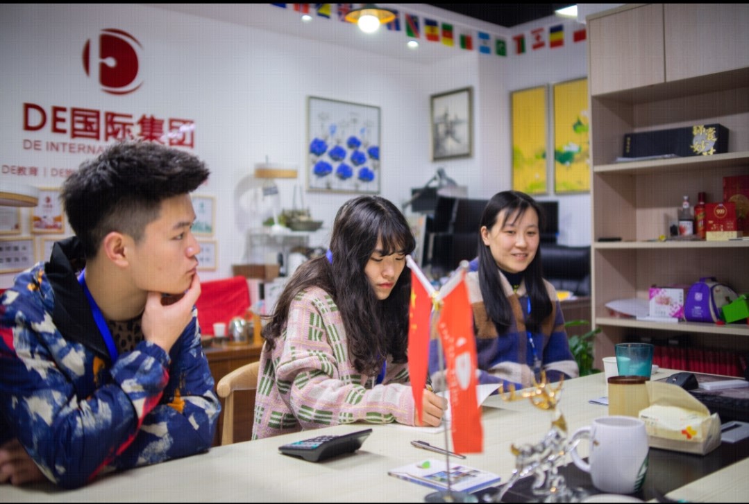 刚到DE国际集团,我们就受到了苏维校友的热情接待。她首先带领我们参观了DE国际集团的各个部门,包括翻译部门、编辑部门、国际义工旅行部门和办公室等,并阐述了各个部门的作用和职责,然后大致介绍了整个公司的主营业务:语言口译、笔译培训和旅游。