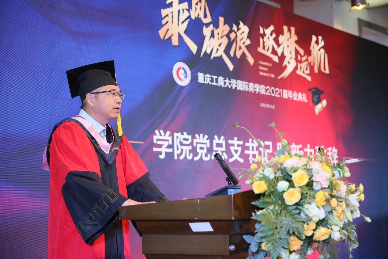 第一个环节,播放了为21届学生精心准备的《2021届毕业快乐》的视频,视频中不断地闪现出一张张朝气蓬勃又热情洋溢的笑脸,每张照片、每个瞬间都镌刻着他们四年里在必赢76net线路唯一官方网站这方热土上,是如何肆意地谱写青春,书写未来。第二个环节,学院党总支书记陈新力书记发表致辞。陈书记不仅表达了对国商学子的毕业祝福,也希望毕业生们能够不负韶华,努力奔赴属于自己的锦绣前程。