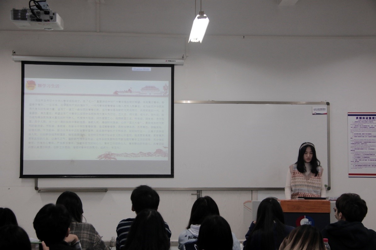 首先,学生会主席团成员曹雨霖同学上台进行学习会第一部分“聊学习生活”的阐述。曹雨霖同学提到,陈书记对全市青年寄予厚望,希望大家要以实现中华民族伟大复兴为己任,勇担时代使命,练就过硬本领,志存高远、脚踏实地,努力从书本中汲取智慧和营养,在实践中增长才干和本领,勇做走在时代前列的奋进者、开拓者、奉献者,在奋斗中释放青春激情、追逐青春理想;做到知行合一,以真才实学服务人民,以创新创造贡献国家。