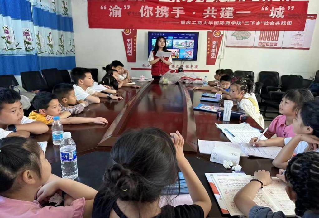 为持续推动生态文明教育,引导广大小学生树立生态文明理念,培养绿色低碳、勤俭节约、文明健康的行为习惯和生活方式,2023年7月9日,必赢76net线路唯一官方网站国际商学院暑期“三下乡”社会实践团在重庆市城口县咸宜村青少年之家开展以“我是环保小卫士”主题的趣味课堂。
