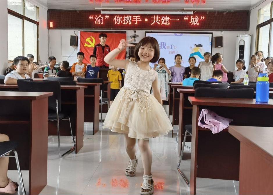 图为在团队成员的引导下小朋友展现出自信的一面
