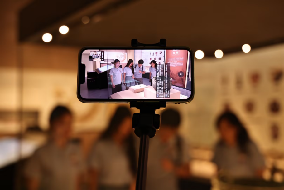 图为实践团成员持设备直播逛馆