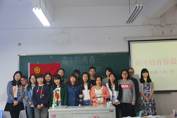 2015年4月10日上午9:30,2013级人资1班团支部于五教田家炳书院309教室,成功开展了“321”工程之“奋斗的青春最美丽”为题团日活动。人资1班全体同学参与了此次活动。
