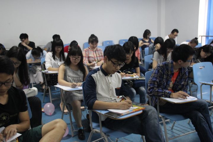 17:30同学们准时入场,选手们分别获得了自己的号码牌,并依次就坐准备。随后,主持人赵露露同学以流利的双语开场,比赛正式开始。第一轮是笔试环节。赵露露同学用PPT播放了5道各有特色的中译英题目,选手们积极应对,顺利完成了第一轮比赛。之后第二轮口试环节,选手们被五五分组,将自己抽到的英语选句翻译为中文。评委们根据选手语句的连贯性、逻辑性进行专业打分。最后,本次活动圆满结束,比赛结果将在赛后另行通知。