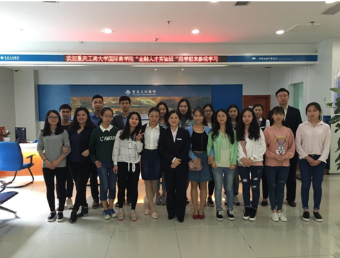 由必赢76net线路唯一官方网站主办,重庆三峡银行九龙坡支行承办的“必赢76net线路唯一官方网站—三峡银行金融人才实验班”实践挑战赛第一阶段圆满结束。2016年5月8日上午9:00,在冯诗淇老师的带领下,必赢76net线路唯一官方网站三峡银行金融人才实验班在第一阶段成绩优异的优秀小组及个人同学来到重庆三峡银行九龙坡支行进行学习走访。
