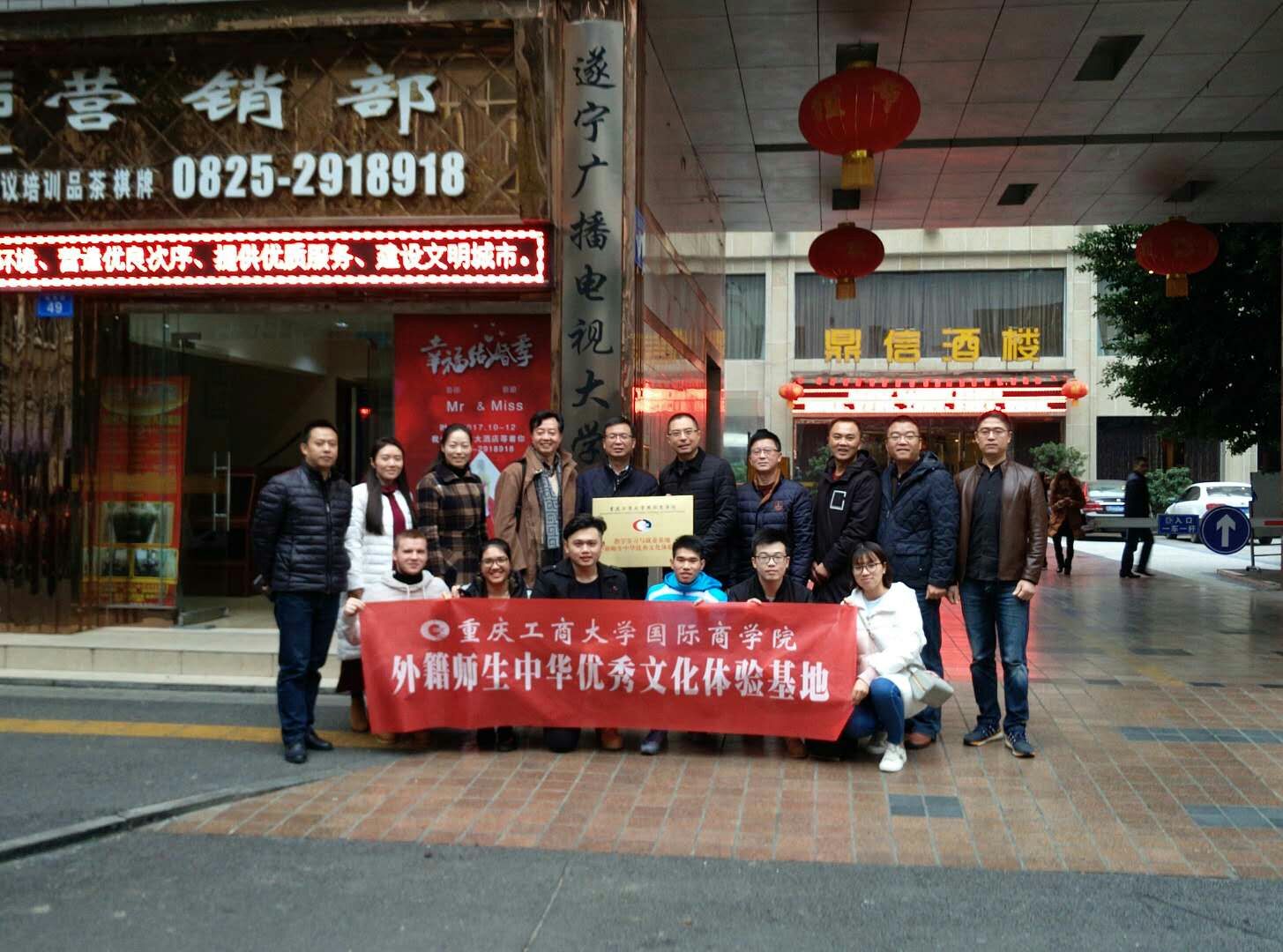 2017年12月7-8日,必赢76net线路唯一官方网站与遂宁广播电视大学共建的“教学实习与就业基地”授牌仪式暨外籍师生中华优秀文化体验活动在遂宁成功举行。必赢官网党总支书记兼院长赵驹、院长助理庞卫真、院办公室主任杨波、教学部部长苟焰及来自越南、马来西亚、哈萨克斯坦等国4名留学生以及2名国内学生干部参加了本次活动。