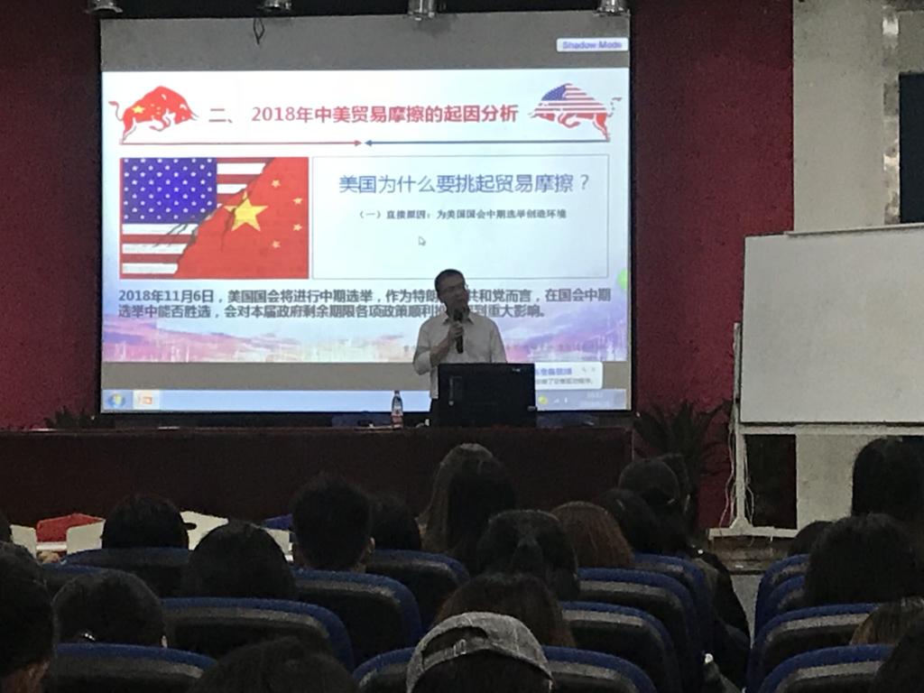 党课上,赵驹同志以“理性认识2018年中美贸易摩擦”为主题,从2018年中美贸易摩擦时间线、起因分析、中美贸易摩擦对中国的影响、应对中美贸易摩擦的策略分析、中国反对美国贸易霸凌的底气等五个方面为在座的全体学院毕业班学生进行了宣讲,受到全体学生的好评。