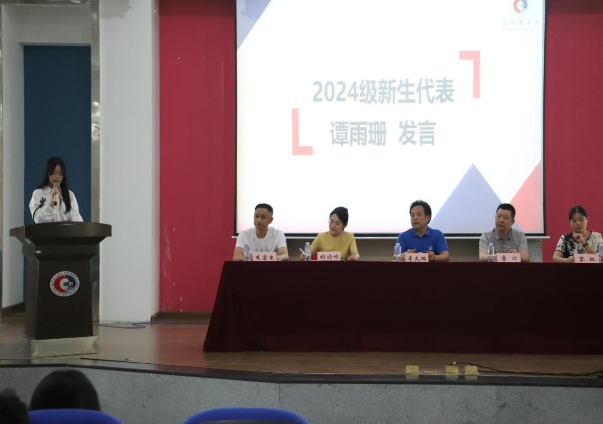 (图为新生代表谭雨珊同学发言)