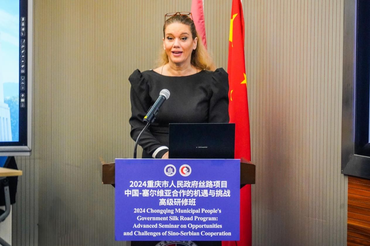 塞尔维亚来宾Mina发言,表达了参加此次国际研修班的感激之情,回顾了中塞两国的传统友谊,特别是两国在历史、经贸、人文等各领域的交流合作中取得的非凡成就。她期待进行富有成效的学习交流,当好友谊与合作的使者,为“一带一路”国际合作贡献力量。
