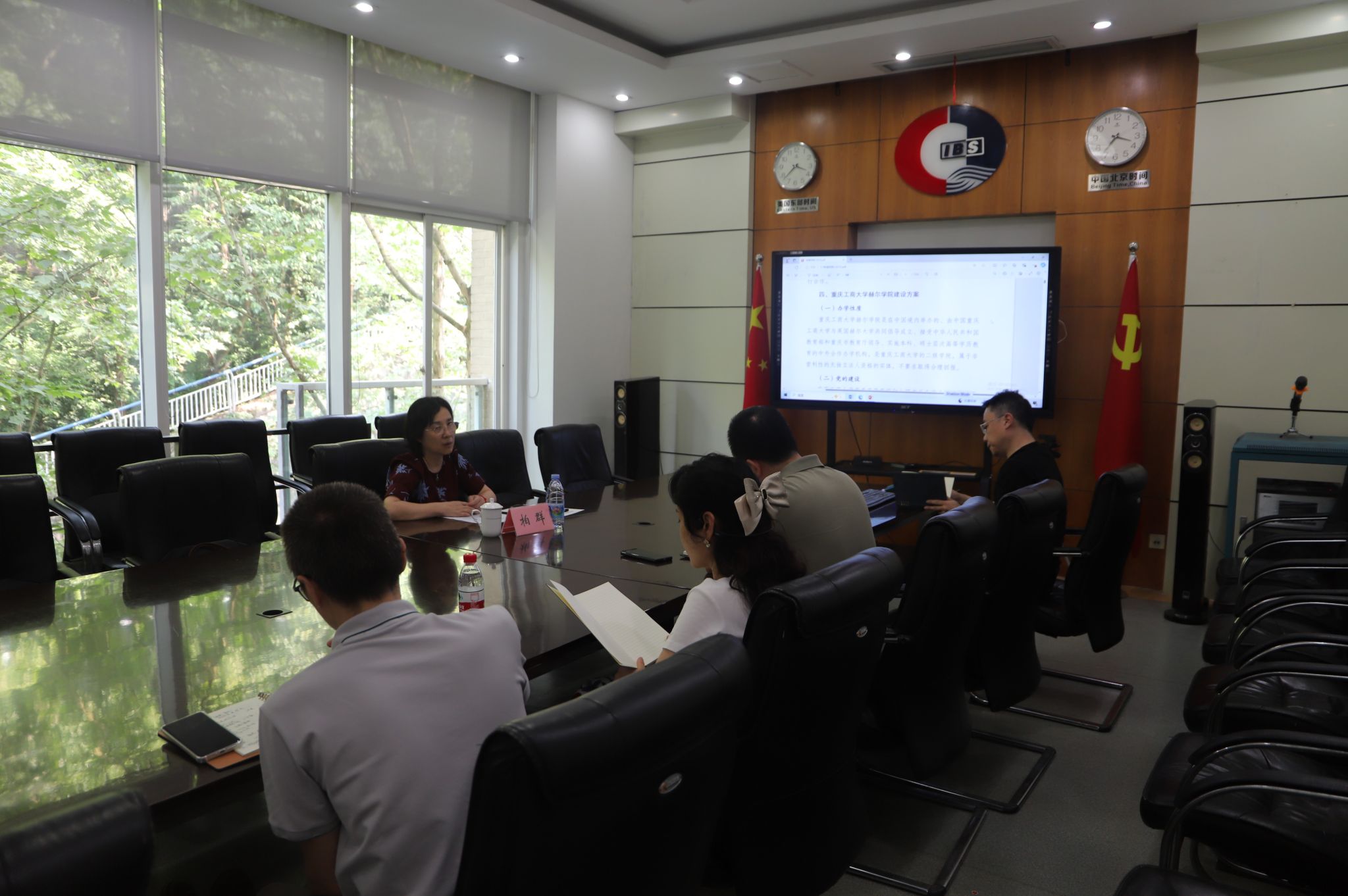 柏群听取了学院中外合作办学机构工作的进展情况,并认真审阅了申报材料,对相关材料的进一步完善做出了指示和要求。