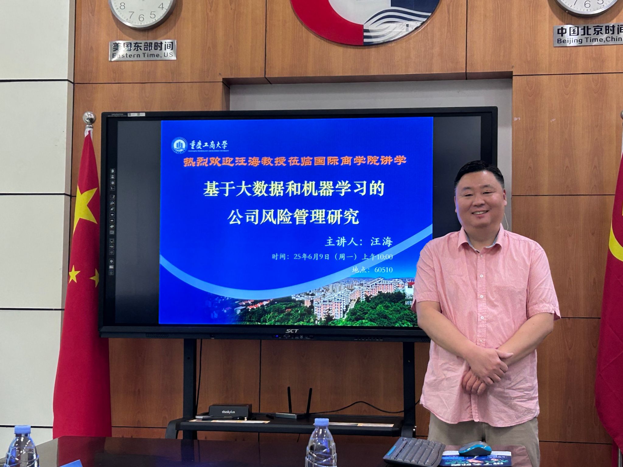 2025年6月9日,加拿大圣玛丽大学索贝商学院金融信息系统和管理科学系的知名教授汪海博士莅临必赢76net线路唯一官方网站,为师生们带来了一场主题为“基于大数据和机器学习的公司风险管理研究”的精彩讲座。此次讲座吸引了众多师生的积极参与,现场气氛热烈,学术氛围浓厚。