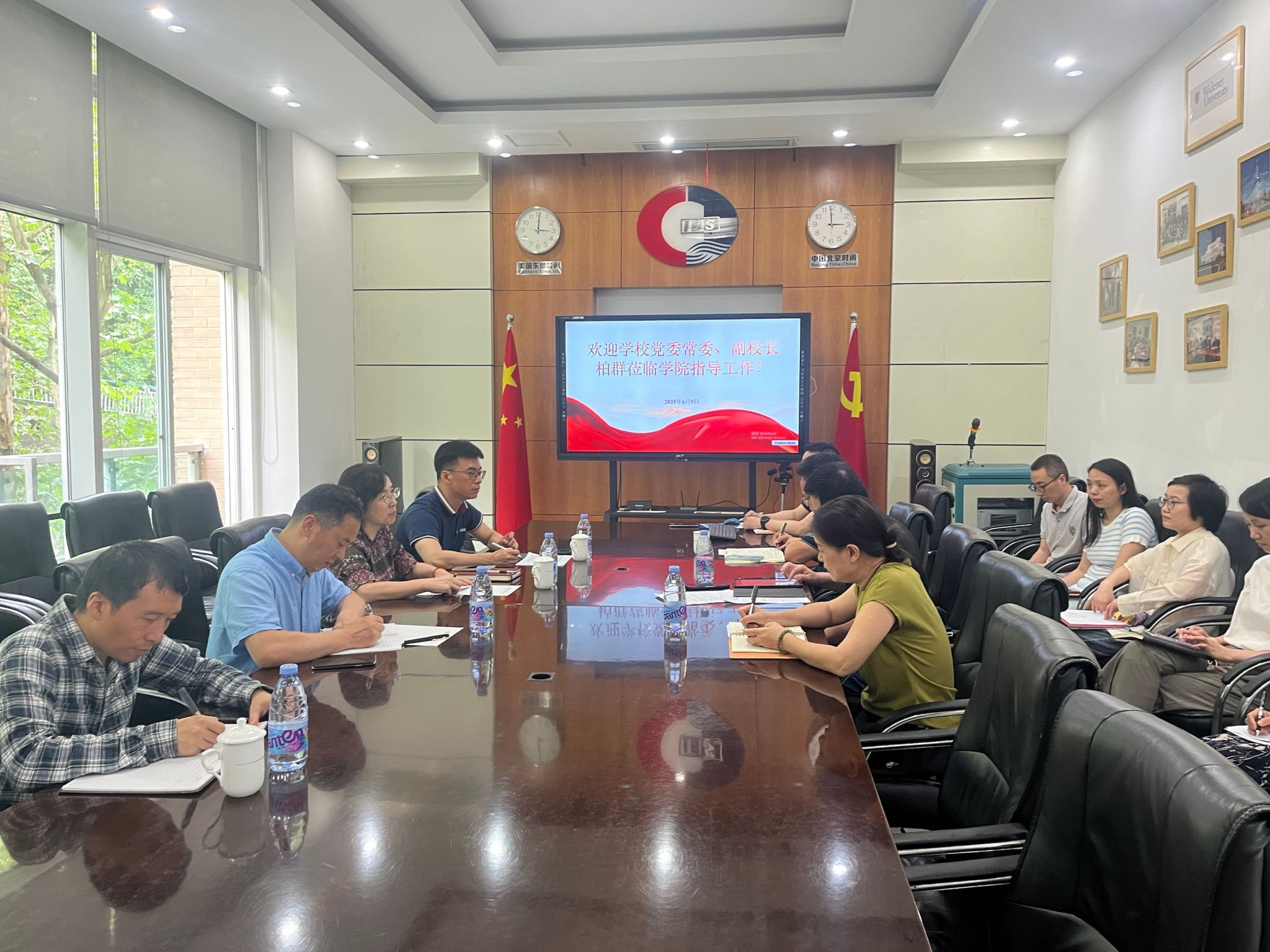 6月9日,学校党委常委、副校长柏群带领学校国际合作与交流处、财务处、资产管理处负责同志到学院指导中外合作办学工作。必赢76net线路唯一官方网站院长詹川、院长助理黎红,相关部门负责人参加会议。