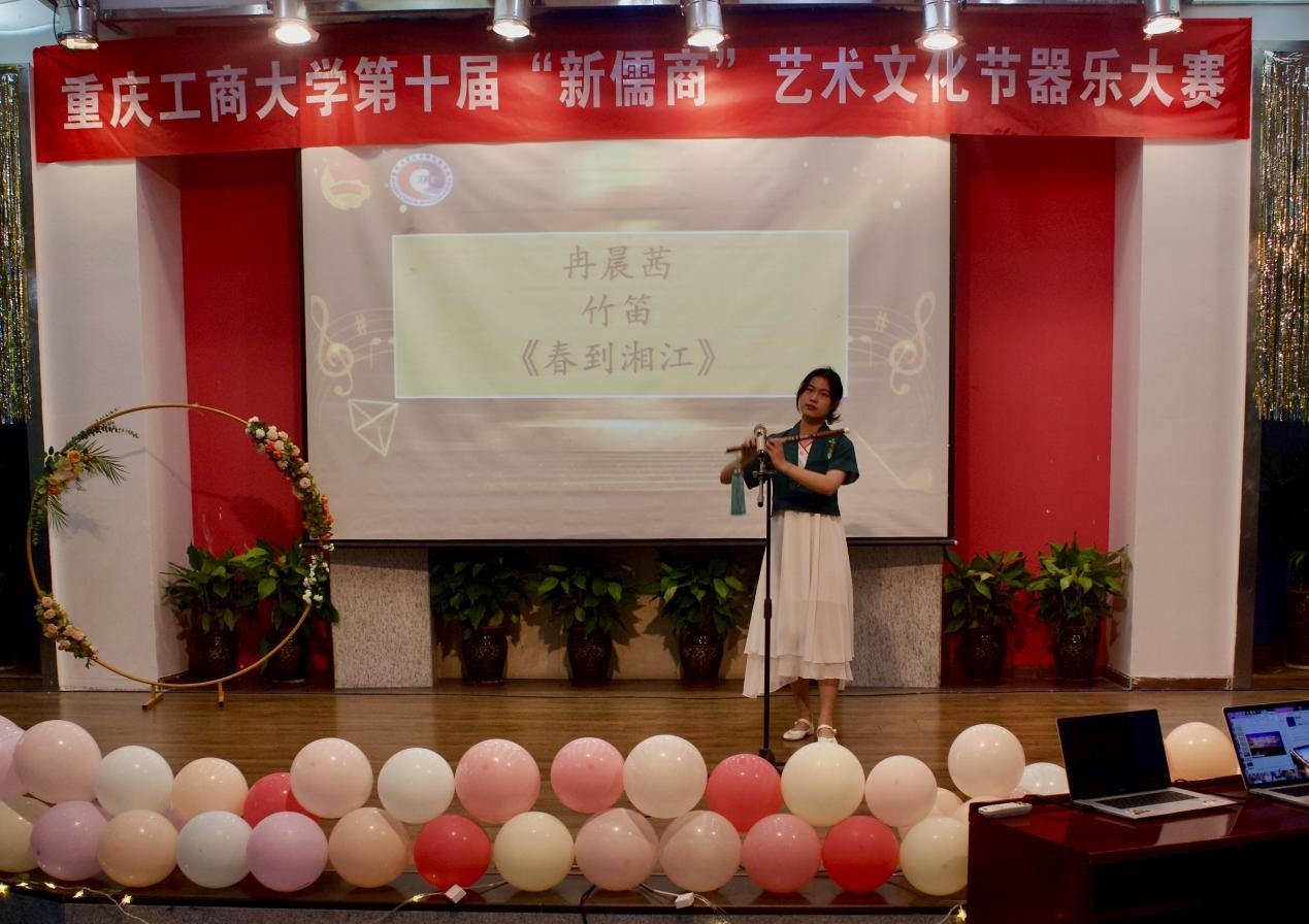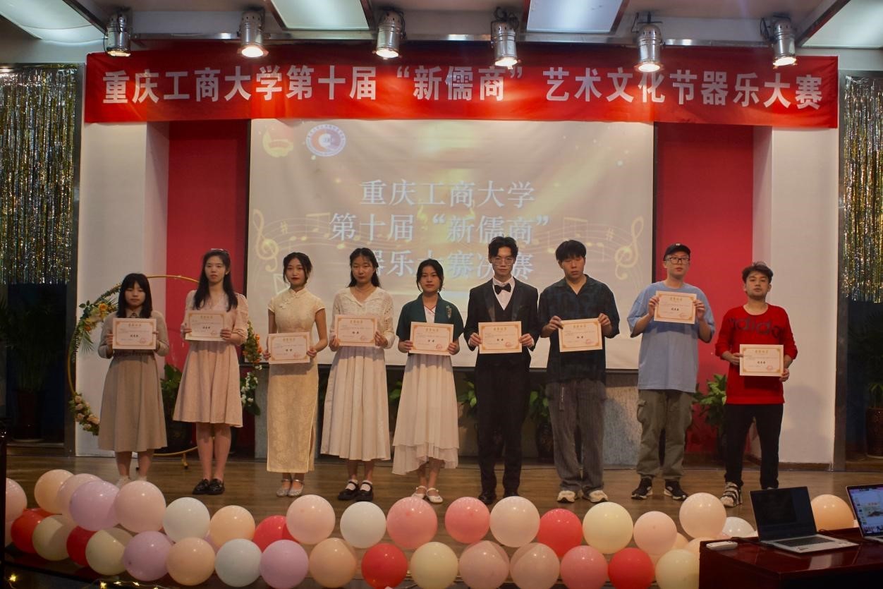 从初赛脱颖而出的十位选手齐聚一堂,展开了激烈的角逐。悠扬的钢琴独奏《人生的旋转木马》,空灵的陶笛曲目《大鱼》、柔和的古筝曲目《幻想曲》、活泼的吉他曲目《Heart》……乐器虽然不同,但演绎出的美妙乐声却是相通的。整个比赛过程节奏时而轻松明快,时而慷慨激昂,选手们用出色的表现为现场观众带来了一场精彩的视听盛宴,一首首曲目让评委和观众们应接不暇,现场掌声与欢呼不断。最终,经过评委评分与观众投票成绩累积,通识学院的冉晨茜同学获得金奖;通识学院唐何金成同学,经济学院卞美杰同学获得银奖;通识学院王山辉同学,法学与社会学学院李至臻同学,人工智能学院蒲双喜同学获得铜奖;必赢76net线路唯一官方网站谭可涵同学,机械工程学院买买提明·司拉木同学,会计学院刘思晨同学,经济学院于易民同学获得优秀奖。在祝贺与鼓励的掌声中,必赢76net线路唯一官方网站第十届“新儒商”器乐大赛圆满结束。