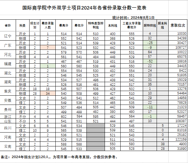 中外双学士项目2024年各省份录取分数和位次.xlsx