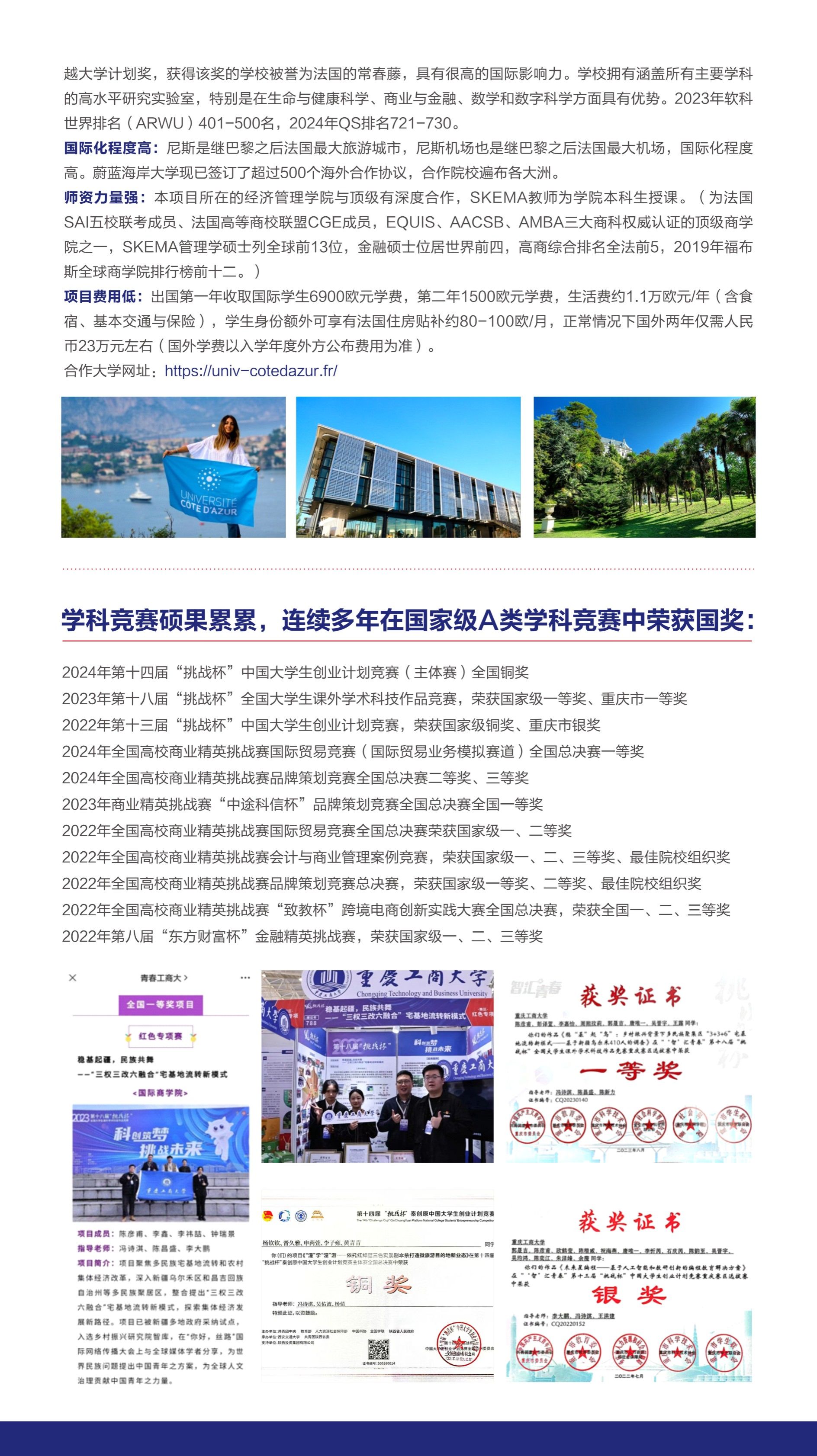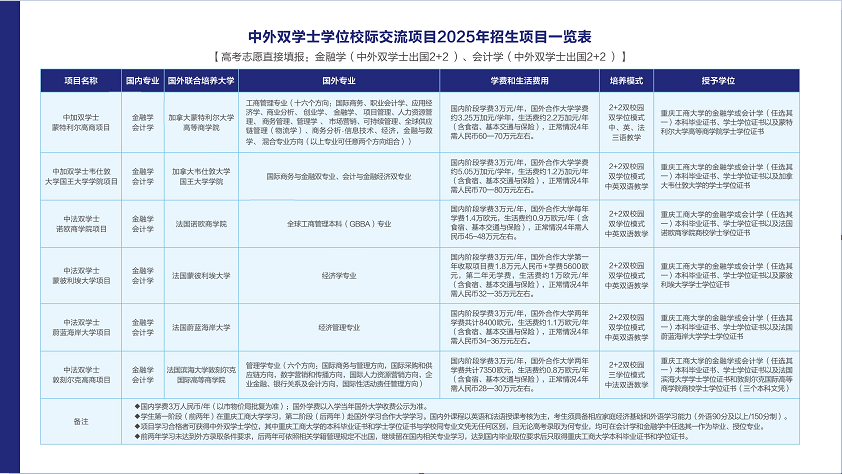 更正说明:中法蒙特利埃大学项目,中法蔚蓝海岸大学项目的培养模式为中法双语教学,表格中“中英双语教学”为排版错误!