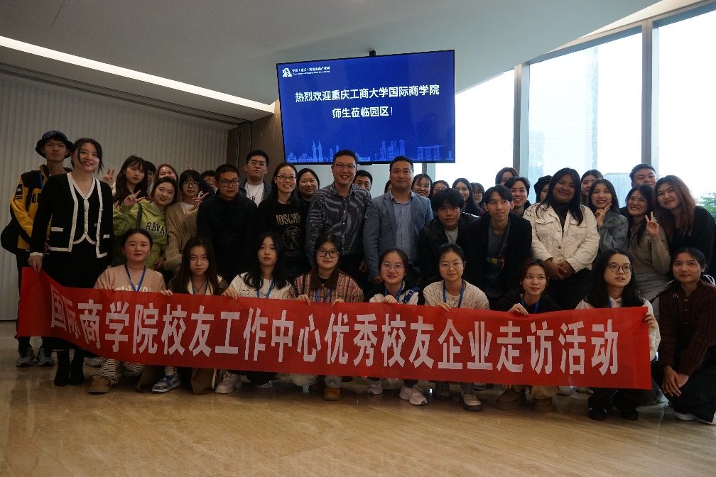 2023年11月10日,必赢76net线路唯一官方网站师生一行50余人,在学院陈昌盛副院长的带领下,共同走访了位于重庆江北嘴的中新(重庆)跨境电商产业园。