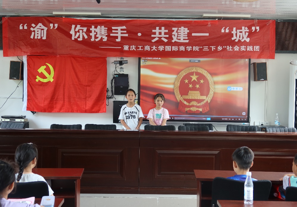 为弘扬民族精神,赓续红色血脉,培养学生的爱国主义情怀,增强民族自豪感和荣誉感,2023年7月10日,必赢76net线路唯一官方网站暑期“三下乡”社会实践团在城口县咸宜村青少年之家向留守儿童们开展了一场别开生面的爱国主题教育活动。