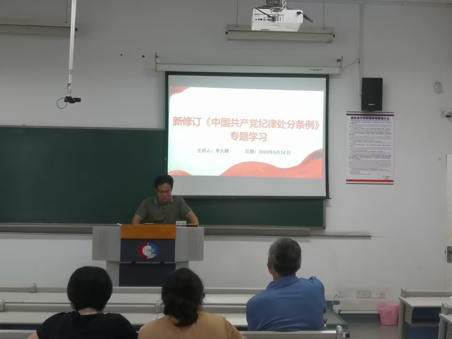 首先,必赢76net线路唯一官方网站党总支书记李大鹏为全体教工党员讲专题党课《中国共产党纪律处分条例》,对条例中新增和修改的重点条文进行了详细的解读,同时对教工支部开展党纪学习教育提出了指导意见和具体要求。